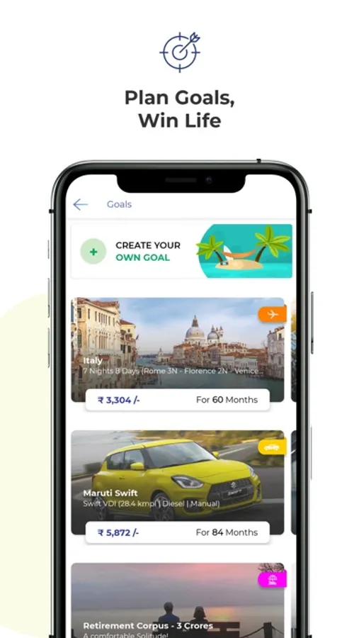 * Create goals like Retirement, New home, Car, Vacation, Child Education and Gadgets etc.