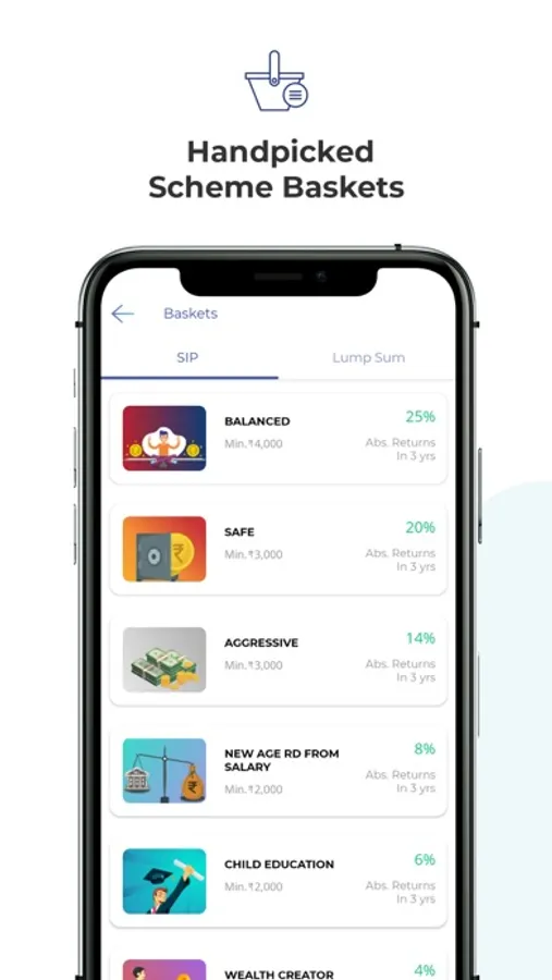 Our Mutual Fund App allows you invest in more than 2500 mutual fund schemes with features like Goal Planning, Mutual Fund Baskets, SIP Calculator, NFOs, Family investment tracker and Direct funds