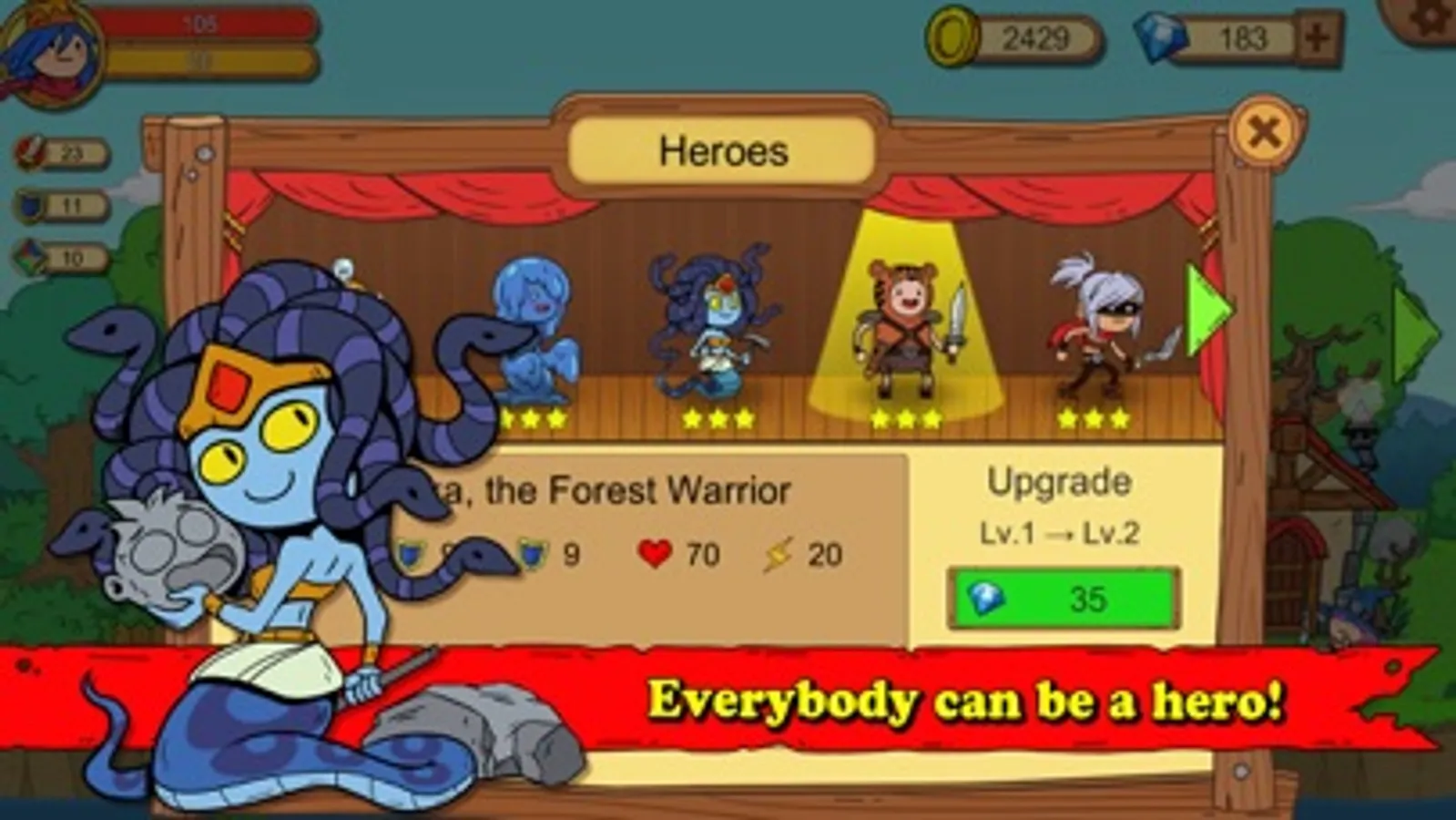 Only you and your heroic comrades can save the world! Characters like Lonely Shepherd and Tavern Maid await you to take them to march to victory!