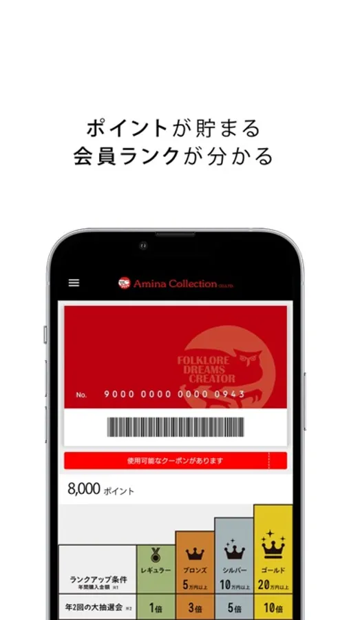 「アミナコレクション」公式アプリは、対象店舗にてポイントカード・会員証としてご利用いただけるだけでなく、最新情報やお得なクーポンをお届けします。