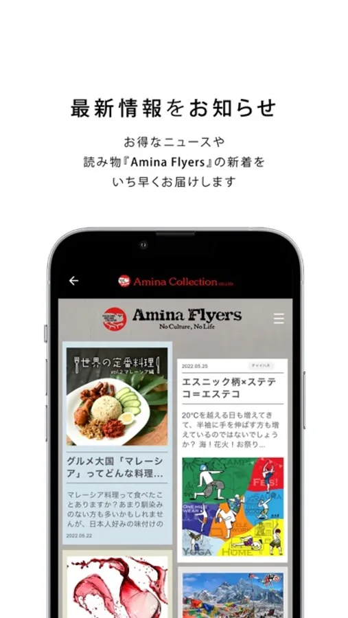 No Culture, No Life をテーマに、アミナコレクションの活動のみならず、それをとりまく世界各国のカルチャーをFlyerに乗せてお届けします。