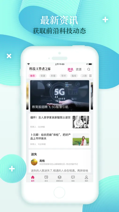 资讯包含党建、科普、学术、智库、人物等特色版块内容。