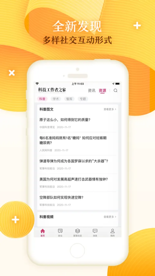 社区主要为了解决科技工作者的学术交流及平台用户活跃的问题,可以让用户在平台上实现社交需求满足。