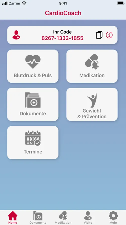 Alle wesentlichen Gesundheitsdaten wie Blutdruck, Puls, Körpergewicht, Ihre aktuellen Medikamente, aber auch Arztberichte, Labor- und Röntgenbefunde sowie Patientenausweise können von Ihnen in CardioCoach erfasst werden und stehen für das Arzt-Patienten-Gespräch stets aktuell zur Verfügung. Ein Terminkalender für Arztbesuche und der Pillenwecker optimieren die Versorgung. Auch die Anforderung von Rezepten ist über die App möglich. Zudem können Trainingsdaten zu einem Bewegungsprogramm erfasst werden.