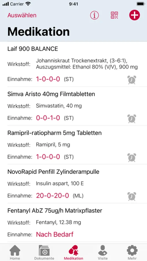 - Abbildung der gesamten Medikation per Barcode-Scan auf der Pillen-Verpackung oder über den Bundeinheitlichen Medikationsplan (BMP)