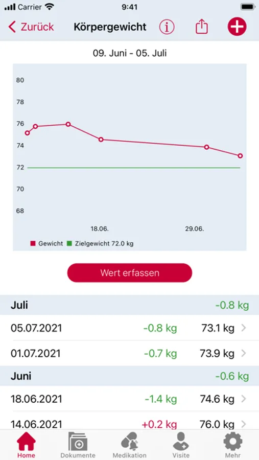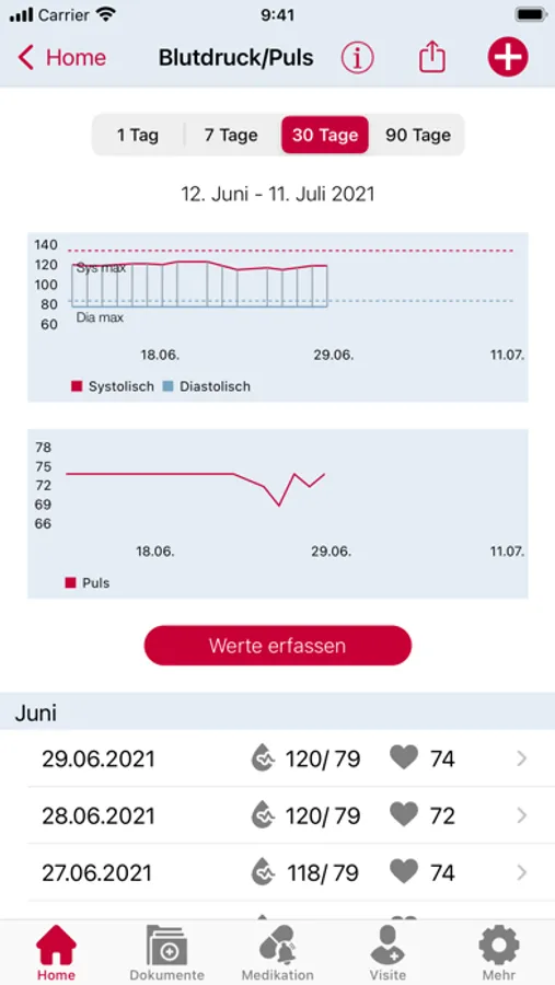 - Sammeln Sie Ihre Vitaldaten wie Blutdruck/Puls und Körpergewicht an einem Ort