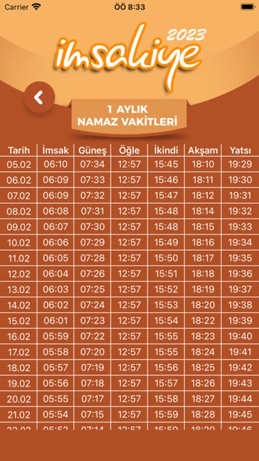 Namaz vakitlerini aylık olarak görebilirsiniz