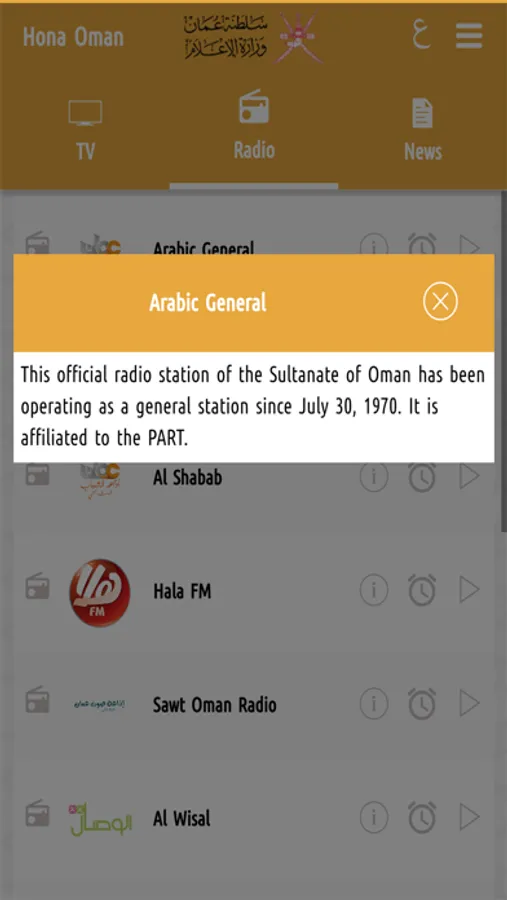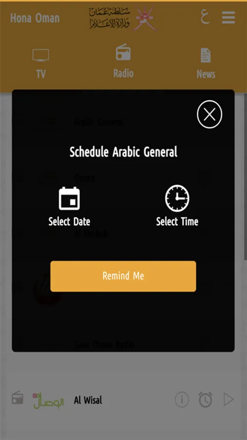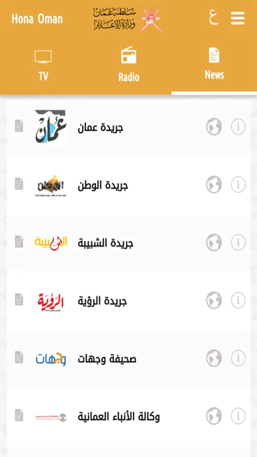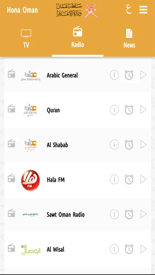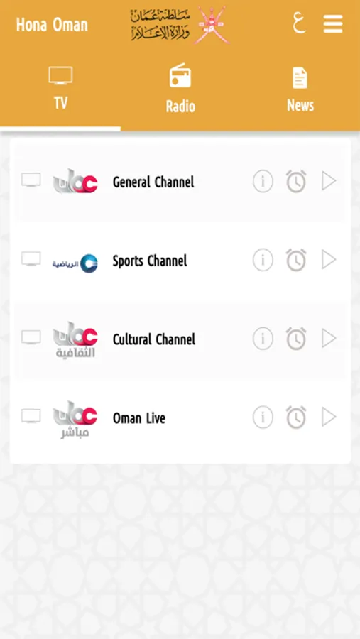 Hona Oman application provided by the Ministry of information Sultanate of Oman to the user to put in his hands the possibility to watch live brodcast of the televison and listen to the live broadcast of the radio through Internet. In addition to the possibility to add a reminder for TV and radio