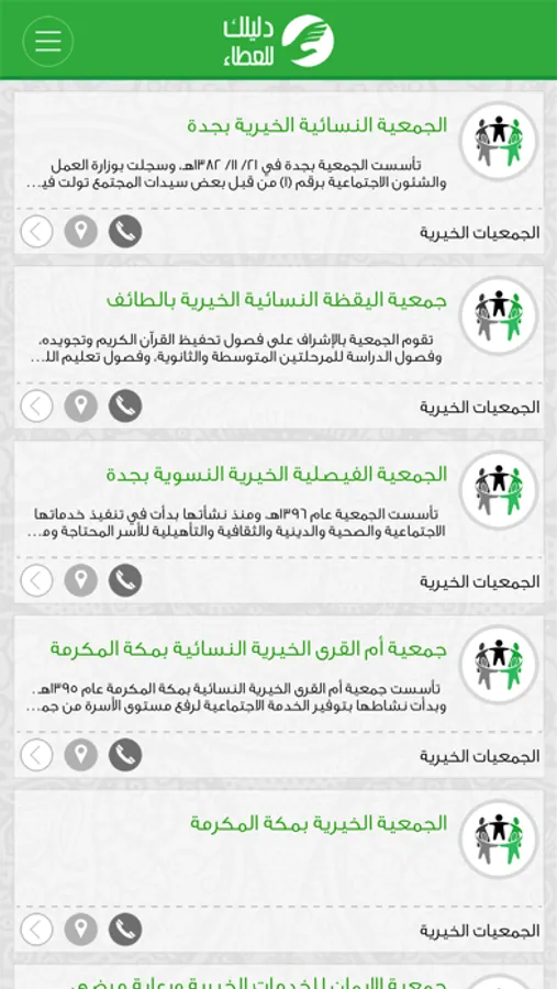 يمكن تحديد كل جمعية أو جهة حسب موقعها في الخريطة أو حسب العنوان، مع جميع معلومات الاتصال للتبرع