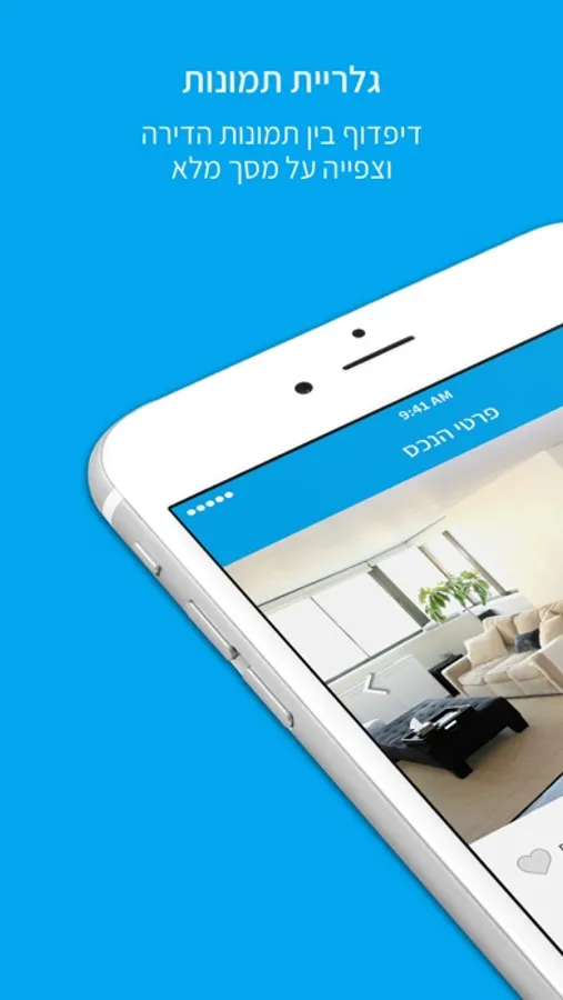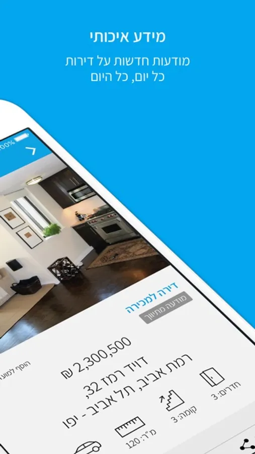• שיתוף - תוכלו לשתף את הדירה שכבשה את ליבכם בפייסבוק ,בוואטסאפ ועוד, ישירות מהאפליקציה
