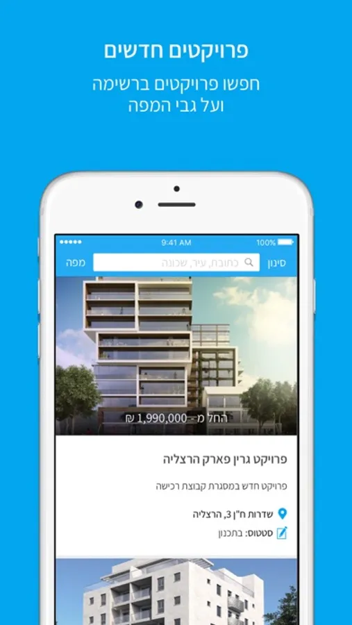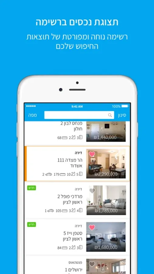 • תצוגה חכמה - תוכלו לבחור בין תצוגת הדירות על גבי מפה לבין תצוגה ברשימה