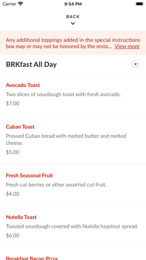 - Place future food orders up to seven days in advance