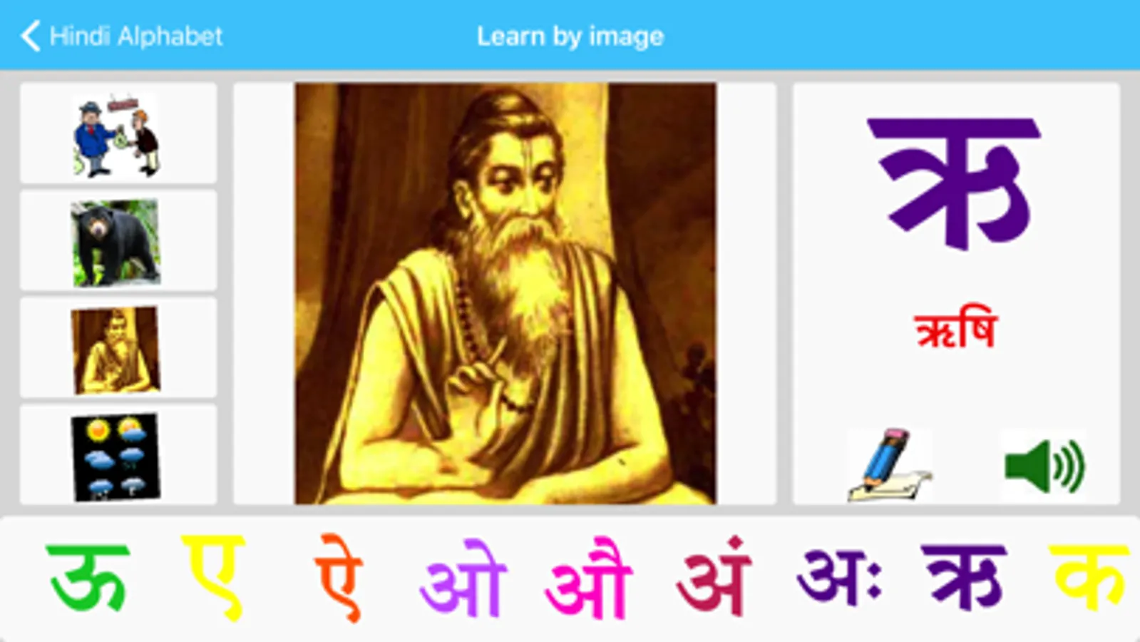 Hindi alphabet - listen, read and write. This is an educational app for preschoolers or toddlers to learn Hindi alphabet from first to last letter and numbers from 1 to 9. Kids learn the alphabet and number along with how to read it and how to write. Your kids will enjoy playing with this app and will learn alphabet and numbers with pictures quickly.