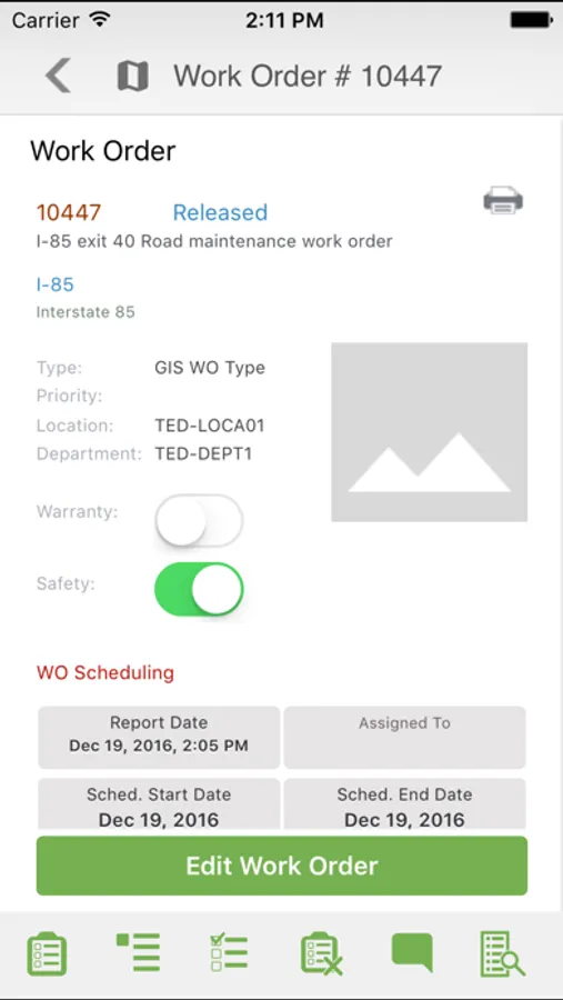 Certain HxGN EAM version is required to work with this version. Network connection is required for the app to sync with the server. A database script may be required to support certain versions of HxGN EAM. Contract HxGN EAM Support for more details.