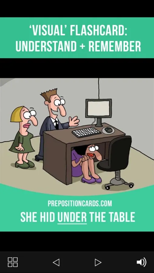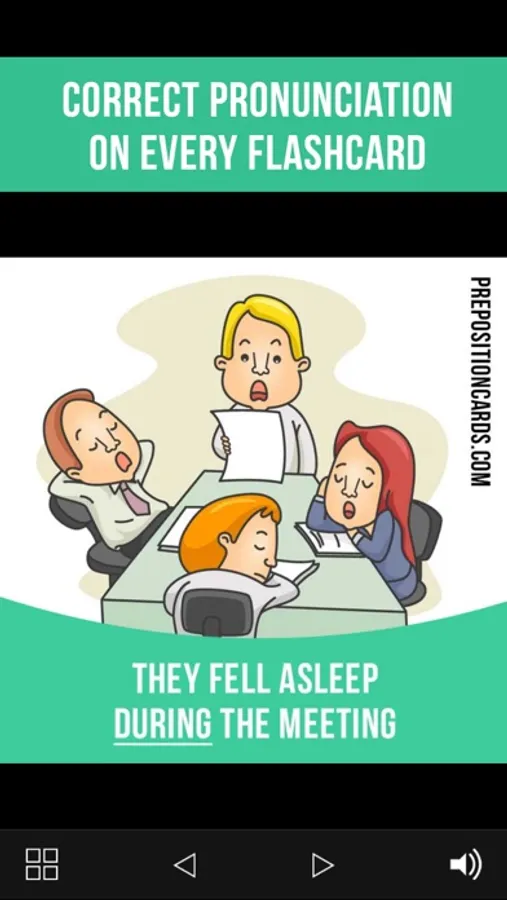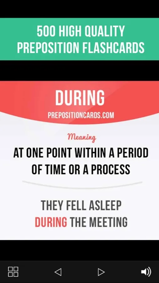 In our app you can find 500 flashcards containing English prepositions, example sentences, pictures and correct pronunciation.