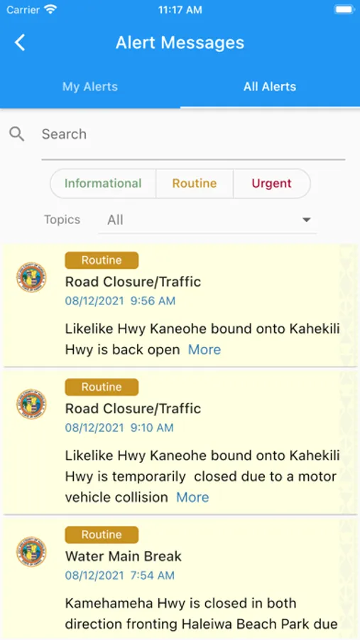 HNL Info mobile app offers free subscription to alerts, so you can be alerted right away with topics of your interest directly to your device.