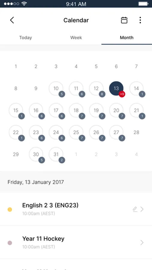 Calendar: the Calendar provides parents, teachers and students a personalised view of what's coming up for the day or in the future. Students can also receive reminders when the due date for their work is approaching