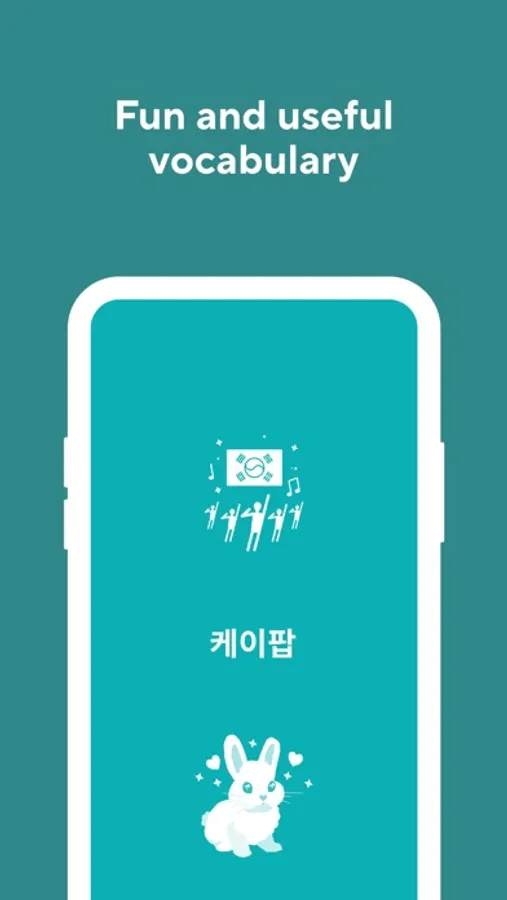 Vocabulary only: Zero grammar, just handpicked practical words. That’s our focus and we do it extremely well. The app teaches the Korean “alphabet” Hangul (hangoul) too!