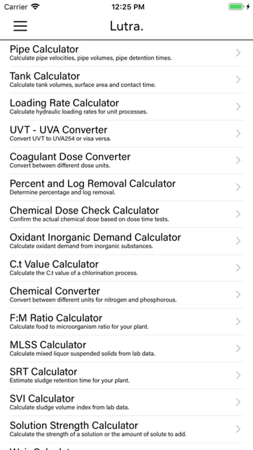 This Water Treatment App features of number of water and wastewater treatment calculators designed to save you time and help you work smarter. We will be adding new calculators regularly so if there is something you want calculated just let us know (help@lutra.com).