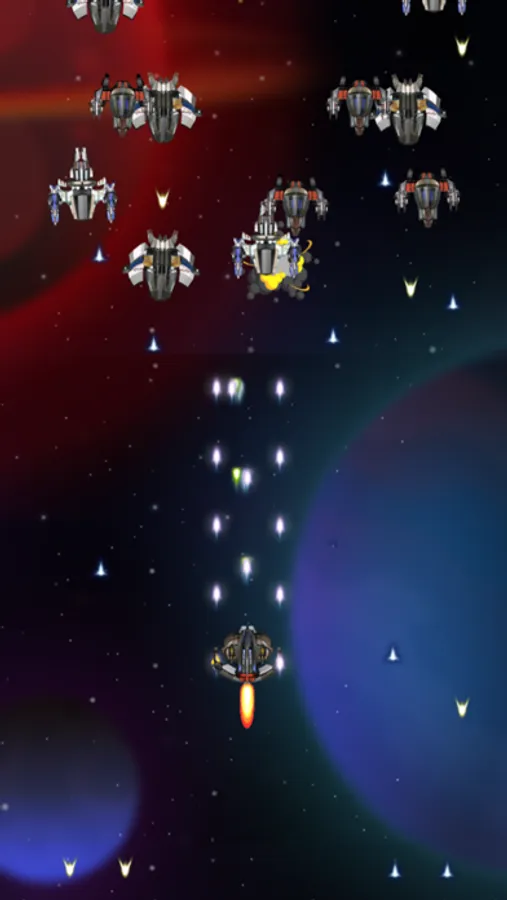 In this game, you must control your spaceship to avoid an obstacle in the galaxy and shoot the enemy to reach the goal.