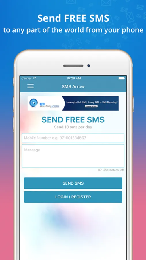 As an SMS sender you can also remove adverts by paying for your SMS at low prices. You can also purchase SMS Credits for sending more SMS in a day.