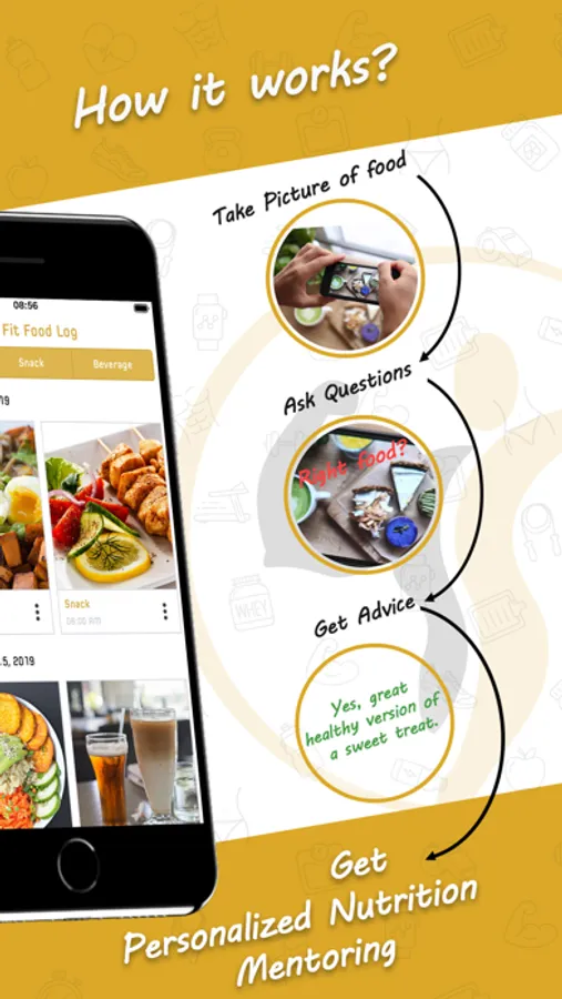 Be advised on how to improve your diet. The app allows you to quickly take a picture of your meals, snacks, and beverages. A nutritionist will review your diet and advise you on improvement. You have the option to ask questions to the nutritionist as part of the program.