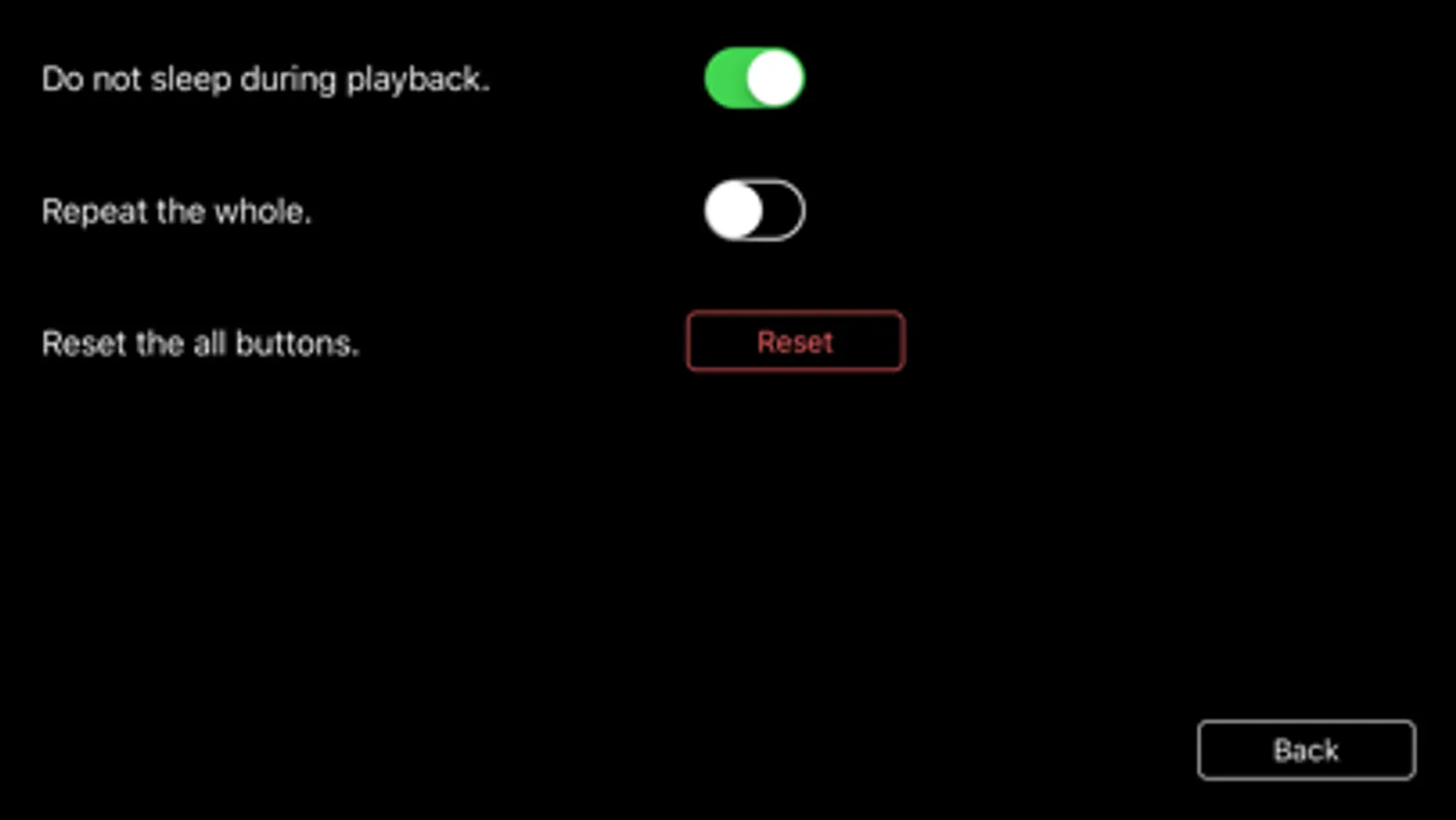 - It is possible to repeat only one song. Of course, if you tap a different button, another song will be played at any time.