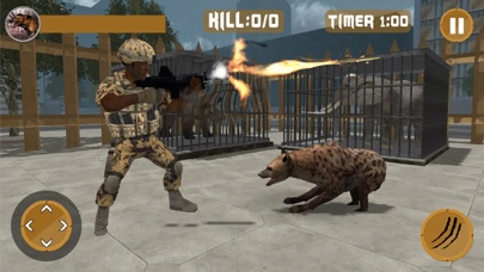 - Take control of a powerful angry hyena: run, walk and do whatever you want using the left-bottom joystick.