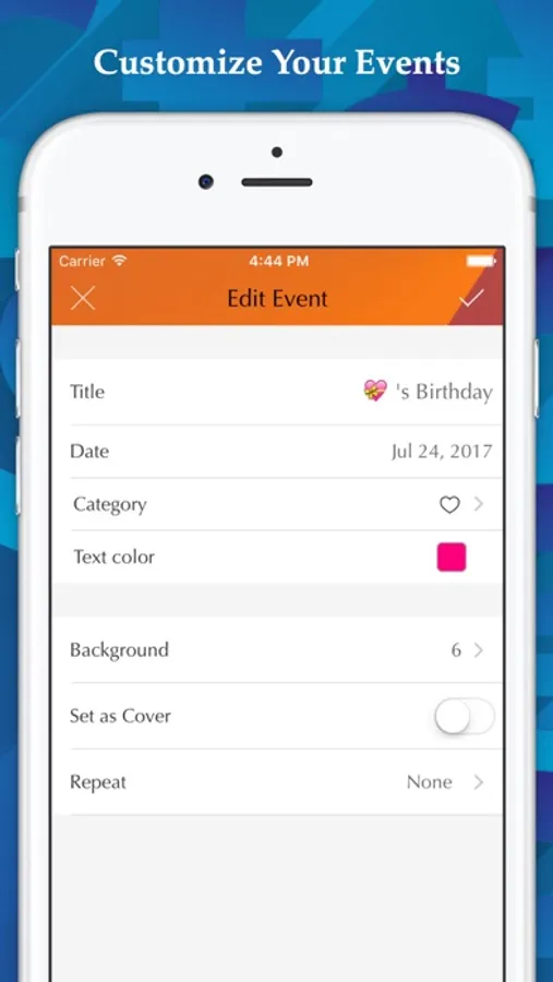- Six default categories (anniversary, birthday, holiday, life, school, and trip) and the ability to add customized ones