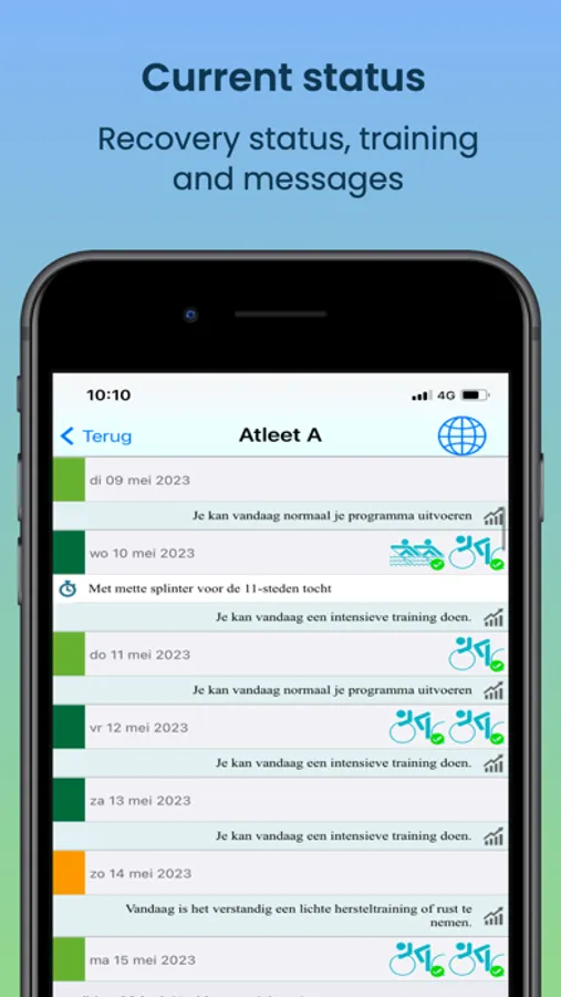 Zooming in to one athlete shows all the comments for training, injury, nutrition and personal notes addressed to you.