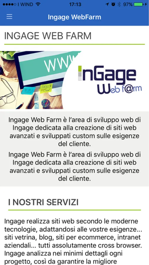 - Ingage sviluppa siti, applicazioni web, applicazioni mobili rendendoli uno strumento di lavoro e di comunicazione