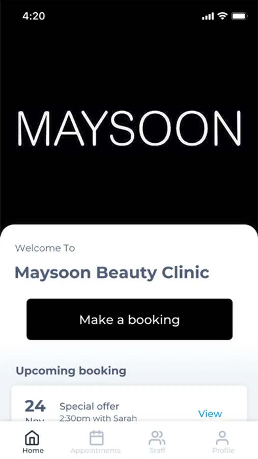 The Maysoon Beauty Clinic app makes booking your appointments and managing your loyalty points even easier. You're just a few taps away from feeling good and looking great!