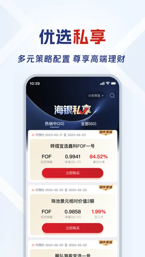 海银基金将以专业的研发团队为支撑,优秀的投资顾问为核心,坚持以客户利益优先的原则,站在独立客观的角度为客户筛选合适的基金,满足客户的多样化投资需求。