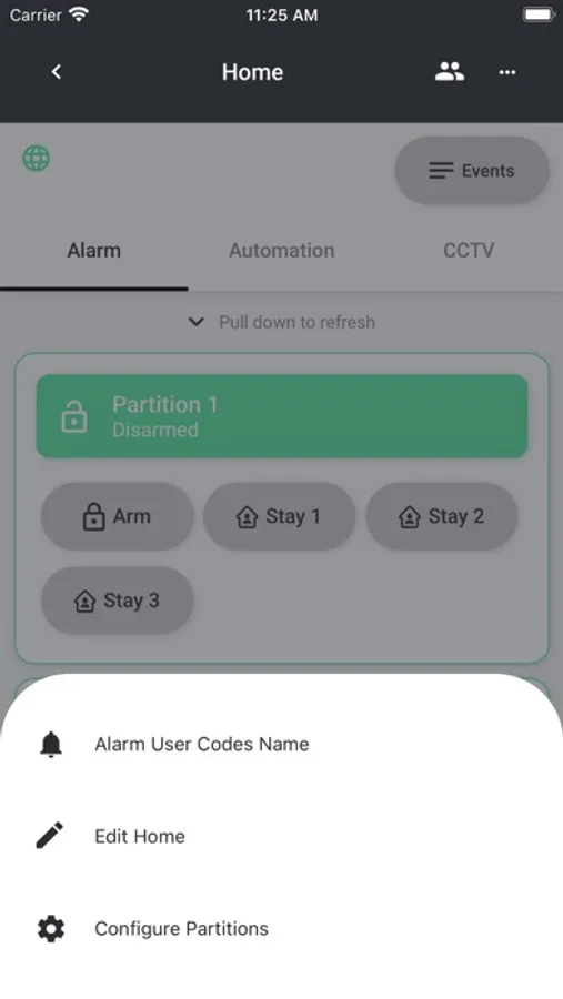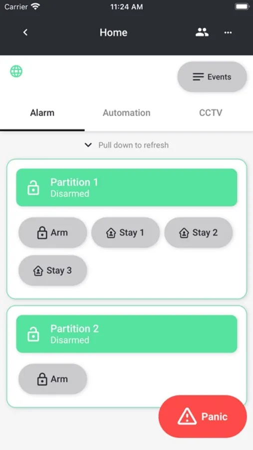- Full arm, stay arm, and disarm abilities as set up by the installer
