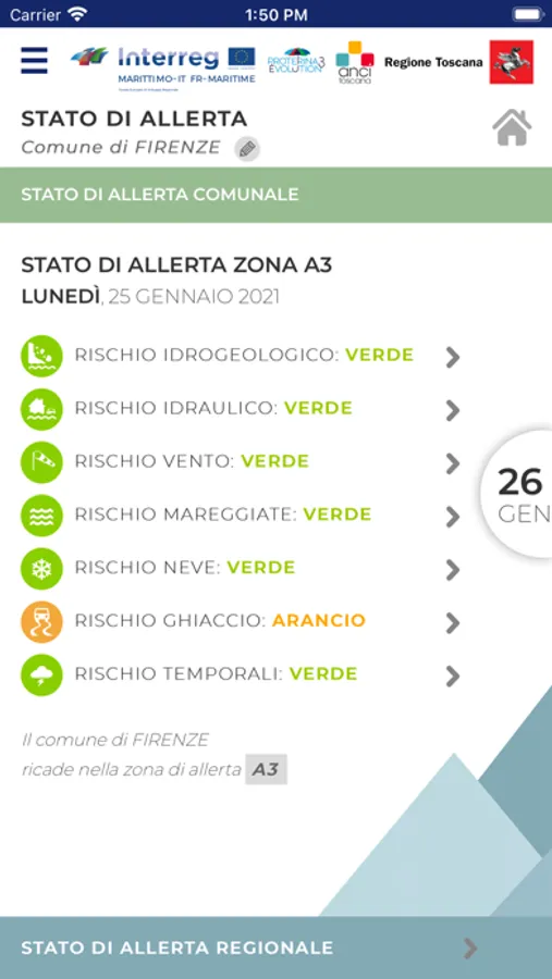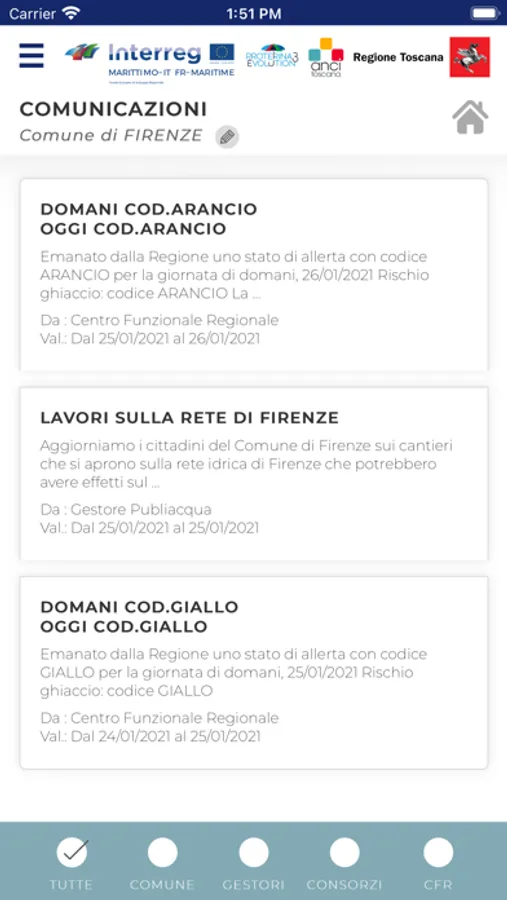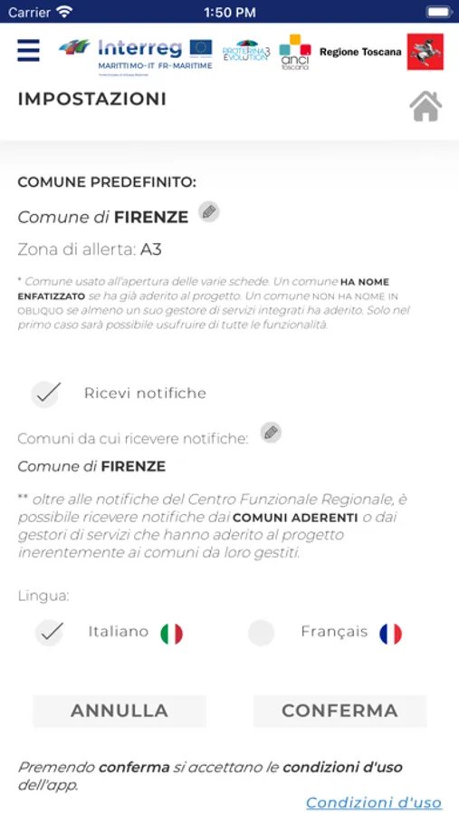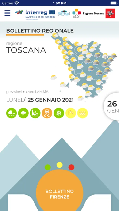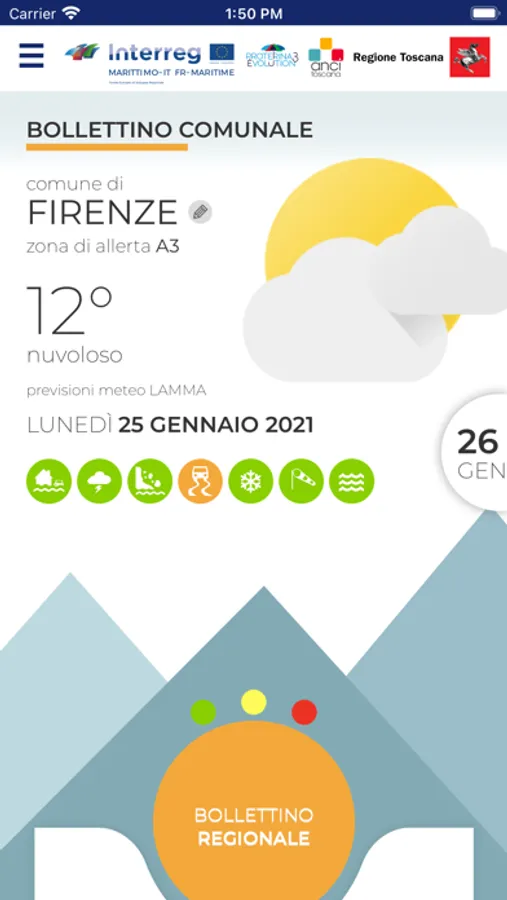 Cittadino InformatoUna app a disposizione di ogni cittadino, da scaricare gratuitamente per tenersi aggiornati sugli stati di allerta in Toscana.Frutto della collaborazione tra Regione Toscana e Anci Toscana, oltre agli stati di allerta fornisce informazioni su aree a rischio e zone sicure da raggiungere in caso di calamità naturale, oltre che su i comportamenti da tenere per ogni tipologia di rischio.Le amministrazioni comunali potranno inviare segnalazioni o avvisi sia di protezione civile che di pubblica utilità e mettere a disposizioni i principali contenuti dei Piani di protezione civile.In collaborazione con Cispel Toscana vengono messe a disposizione anche le informazioni di pubblica utilità delle aziende del servizio idrico integrato.In collaborazione con l'Ass. Naz. Bonifiche Irrigazioni (A.N.B.I.) della Toscana vengono messe a disposizione anche le informazioni di pubblica utilità dei Consorzi di Bonifica.Oltre che sui tablet e gli smartphone i contenuti della app sono visibili anche sul sito internet collegato al portale dei comuni aderenti al progetto:www.cittadinoinformato.it