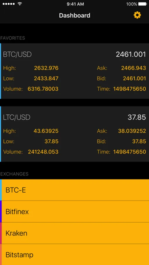 - access all rates from Coinbase Pro, Bitfinex, Kraken, Bitstamp, OKCoin, Poloniex, CoinFloor and GDAX,