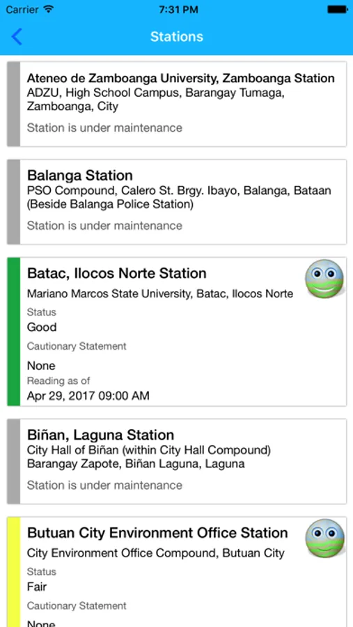- Pinpoint AQMS stations in the map showing AQI value with corresponding color code status based on US EPA standard.