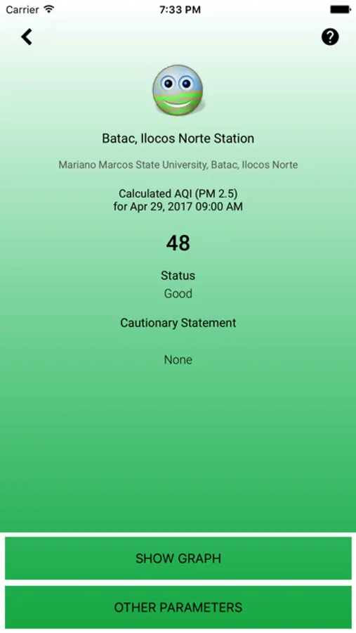 - Identify and categorize level of health concerns based on the computed Air Quality Index (AQI) with cautionary statement to the general public and with the corresponding color code.