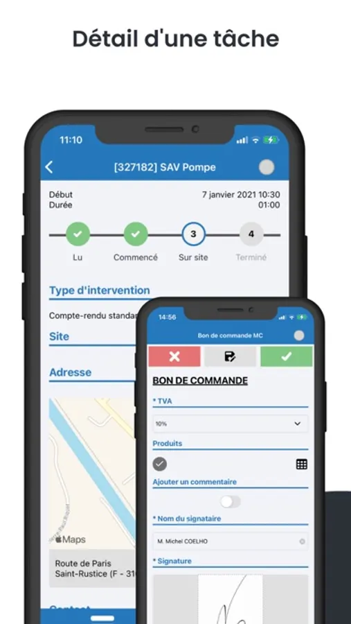 Ils peuvent remplir les comptes rendus d'intervention sur leur appareil mobile, avec des photos et des signatures.