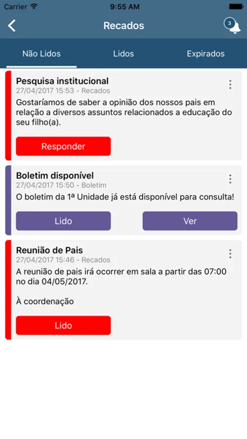 Através do nosso aplicativo, pais, responsáveis e alunos terão acesso a importantes informações do dia-a-dia escolar, como: