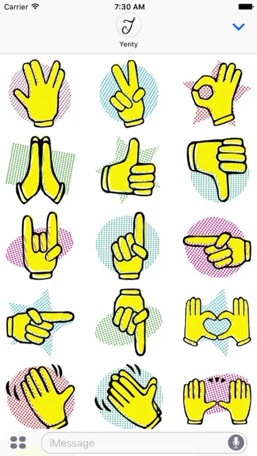 iMessage stickers pop art design with a lot of varieties, from comic speech bubble to hand gestures stickers + much more that you can use in your daily conversation to express your feeling and share your joy ;).