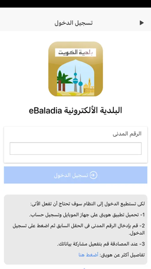 هذا التطبيق أنشئ لنوعين من المستخدمين المستخدم الاول هو المواطن الكويتى الذى يمكنه ارسال طلبات الشكاوى من خلال الجوال والتقاط صور للشكوى و سوف تقوم بلدية الكويت بمتابعة الشكوى وحلها فى أسرع وقت وبأمكان المواطن متابعة الشكوى من خلال التطبيق الى ان يتم حلها ، المستخدم الثانى هو موظفى بلدية الكويت الذين يمكنهم إجراء التفتيش على الموقع من أجل التقاط صور التفتيش .في الوقت الحقيقي وأن تكون قادرة على تحميلها مع المعلومات الجغرافية لمدير الموافقات.
