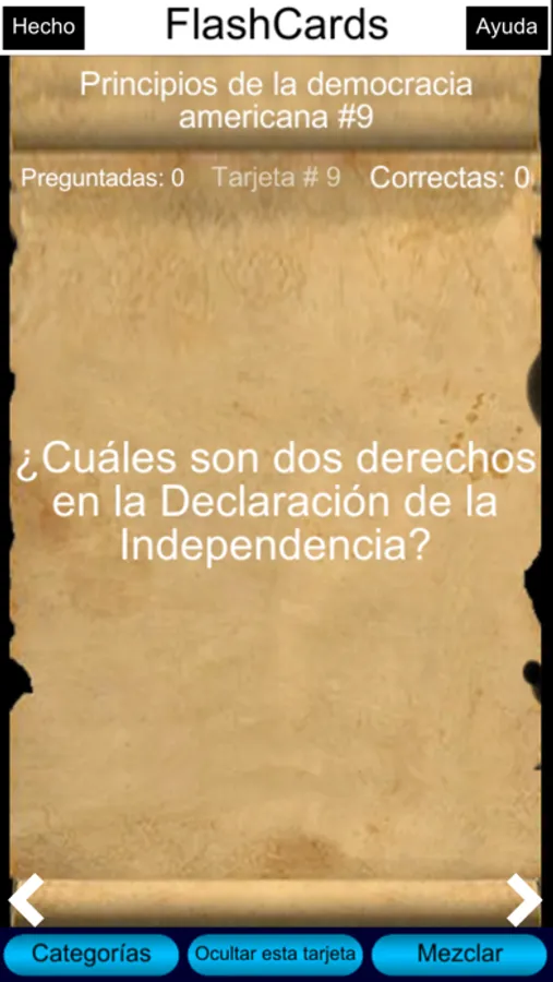 Usa esta aplicación para aprender las respuestas de todas las preguntas y practica la prueba actual de ciudadanía USCIS. 100 cartas flash personalizadas para las preguntas. Velas en orden aleatorio, o en el orden presentado en la documentación USCIS. Toma una prueba de práctica y revisa si puedes obtener el puntaje suficientemente bueno para pasar la Prueba de Entrevista actual.