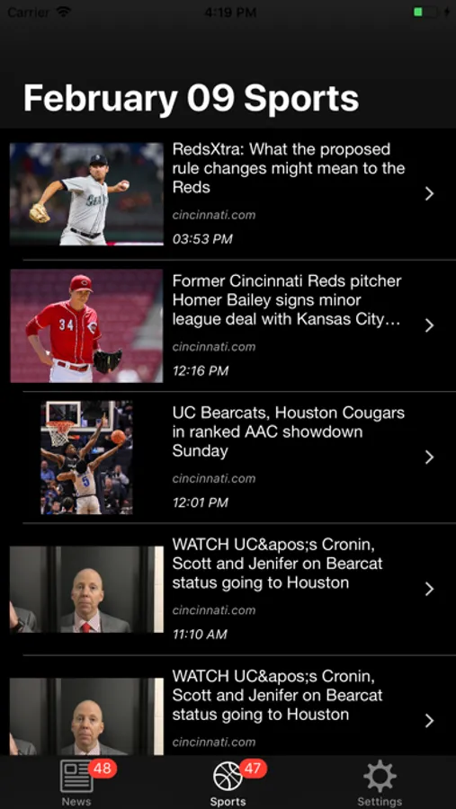 The Cincinnati News app is an RSS feed reader that connects you with all your favorite local news sources. You'll get all the stories in one feed and be able to swipe them away if you don't want to read them. Once you've read them you can see it's been read, or automatically have the story removed from the list. Pick from WLWT, FOX19, WCPO, Cincinnati.com, or the Cincinnati Business Courier.