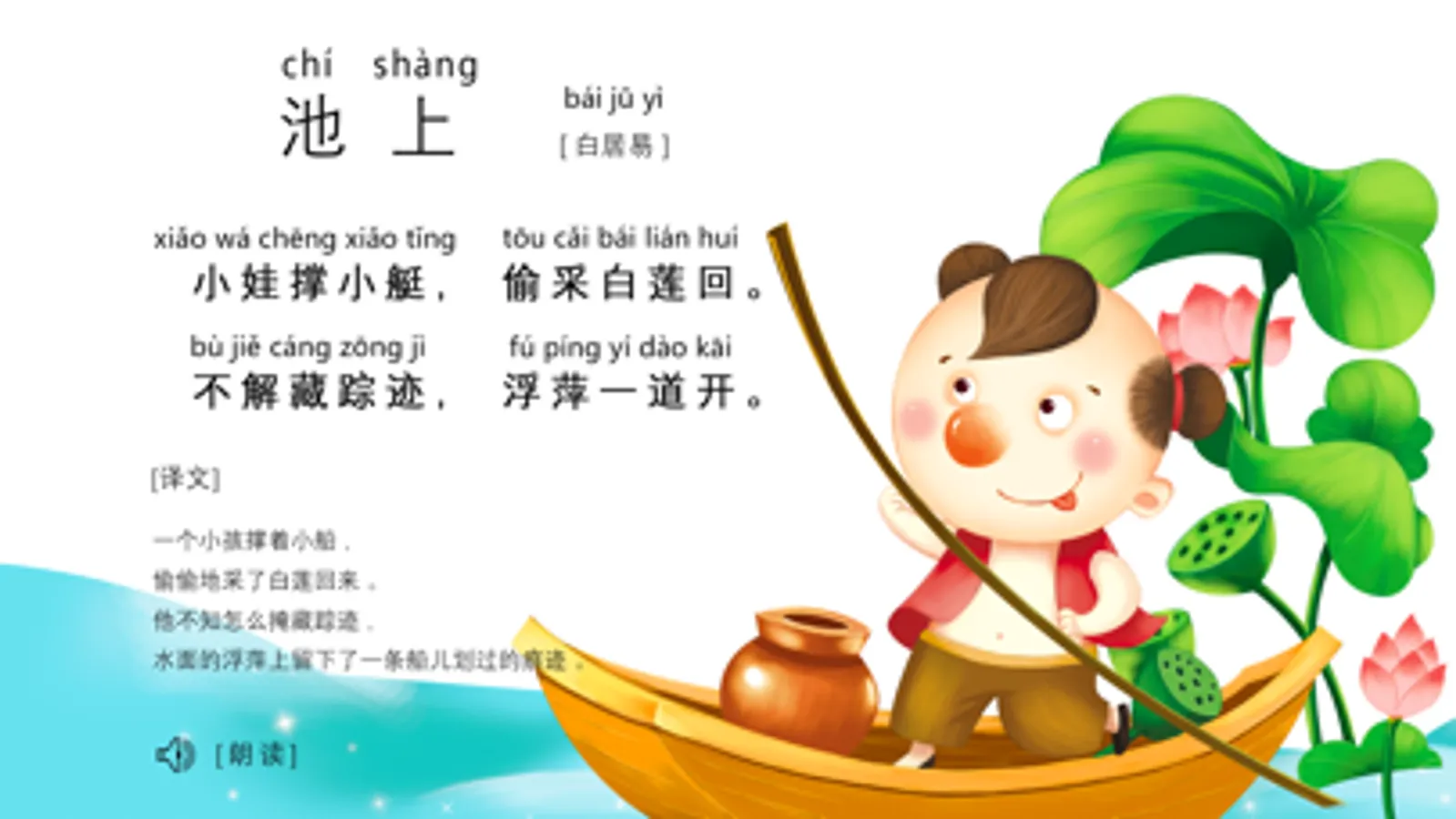 我们特意挑选了篇幅短小,浅显易懂,读起来朗朗上口的唐诗介绍给小朋友。