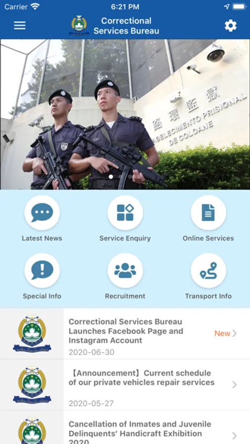 For different sectors and the public to access the latest information and the Online services of the Correctional Services Bureau conveniently, the “Correctional Services Bureau Mobile Application” has launched. With the Application, users, no matter where they are, will be able to have easy and swift access to the Bureau’s information.