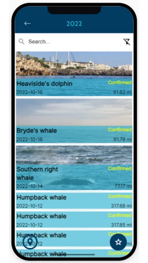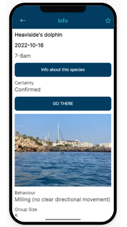 Seafari allows registered users to report and track marine mammal activity. It also includes species info, pictures and distribution maps for marine mammals specific to the Eastern and Southern African coastlines.
