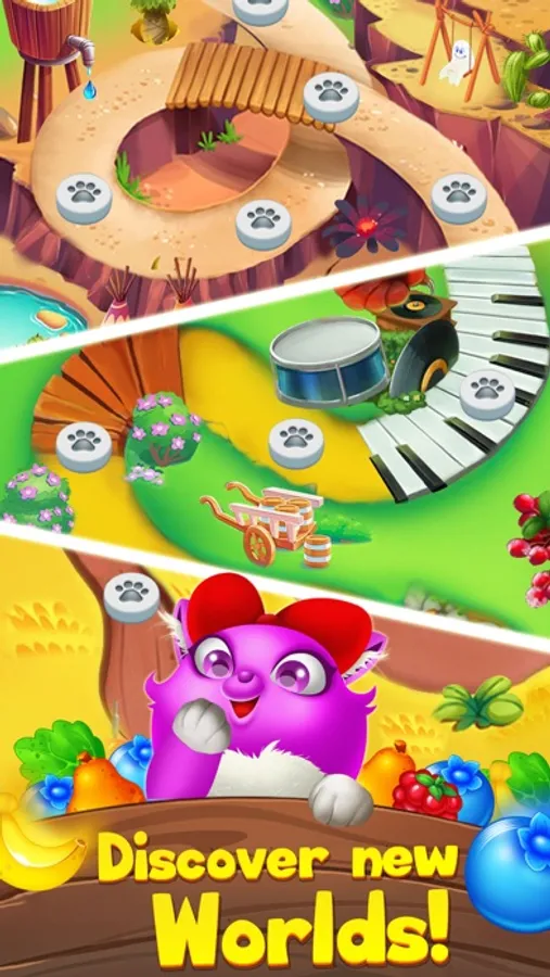 At our fruit farm, there are mysterious fruits portals, magic keys, bombs, and ice cubes… Also lots of juicy fruits! Hundreds of levels of fun and sweetness are waiting for you!