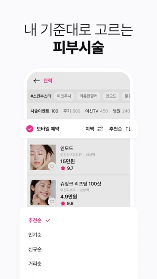 피부 유형, 관심 설정으로 내가 찾던 맞춤형 시술을 발견해 보세요.