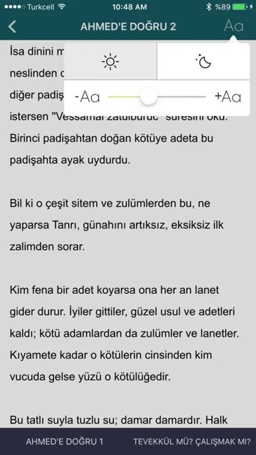 Mesenevi-i Şerif okurken kaldığınız yere ana menüden rahatça ulaşabilir ve yazı boyutunu ve okuma temasını değiştirebilirsiniz.